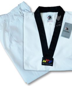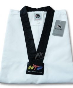 Võ phục Taekwondo cổ đen vải sọc hiệu Black Eagle cao cấp
